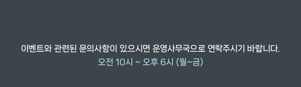 5만원 초과 경품 안내는 당첨 발표 후 개별 공지할 예정이며, 당첨자 발표 5일 이내 답변이 없을 시 혹은 이벤트 참여 정보 입력 오류 시 당첨이 자동 취소됩니다.