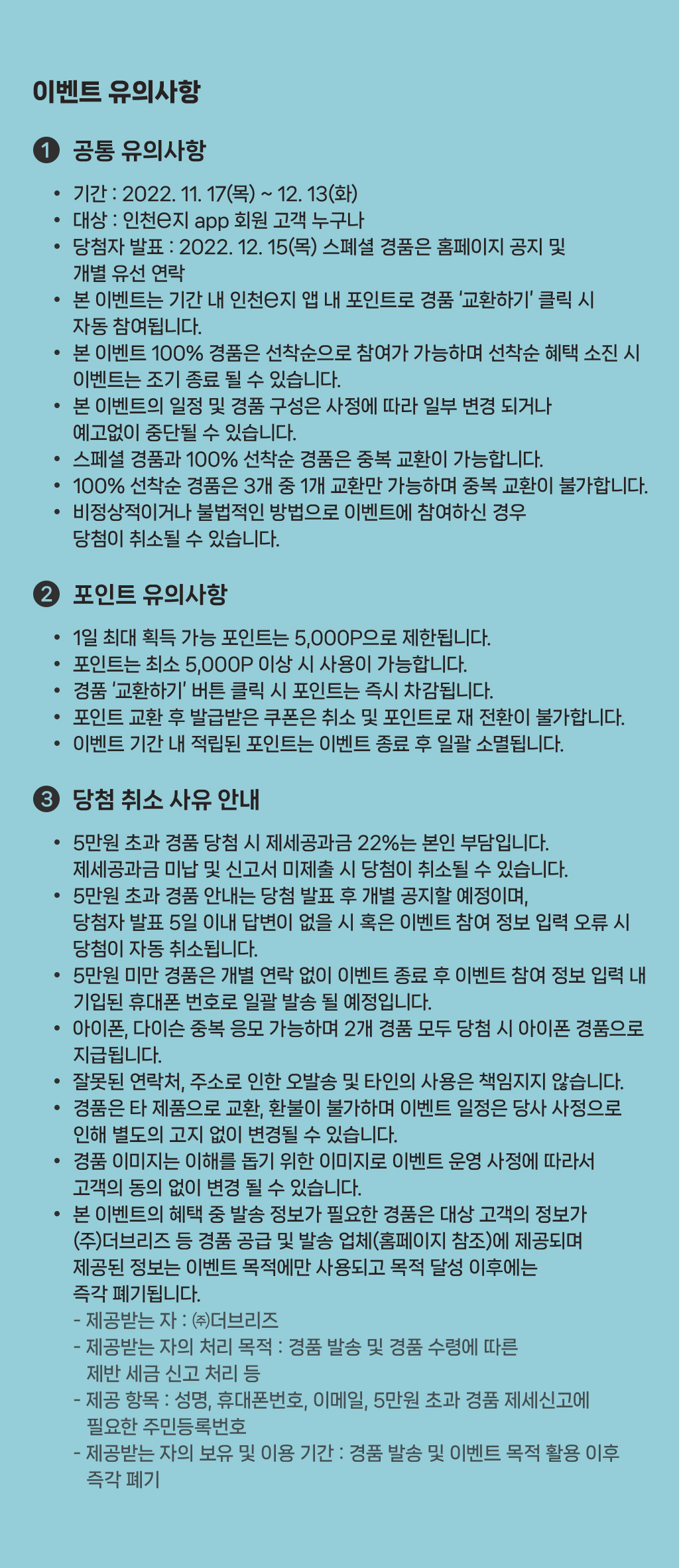 ※ 5만원 초과의 경품 당첨자 발표는 인천e지 홈페이지 공지되며 개별 연락 드릴 예정입니다.
