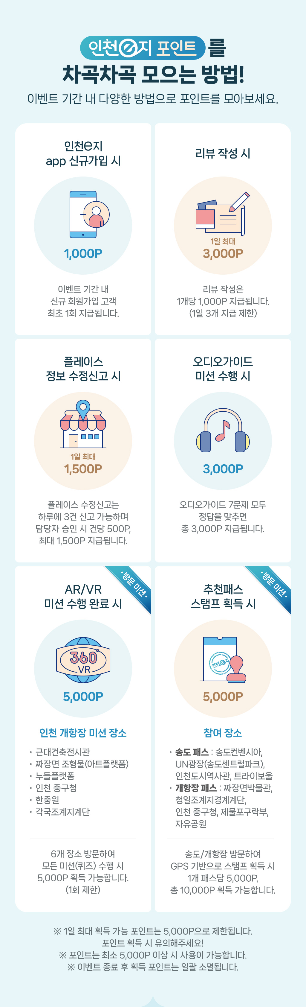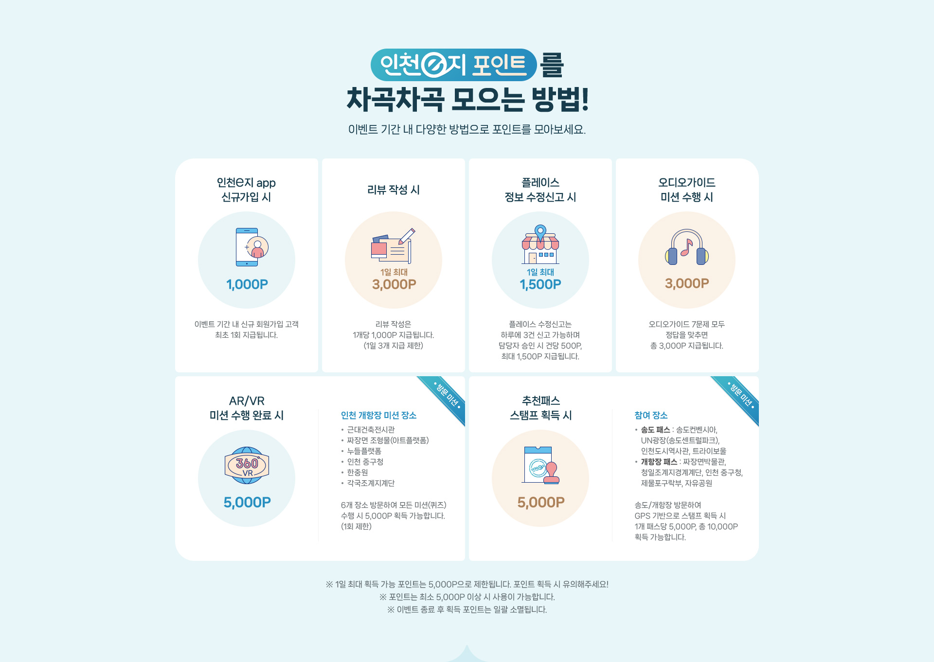 ※ 1일 최대 획득 가능 포인트는 5,000P으로 제한됩니다. 포인트 획득 시 유의해주세요!